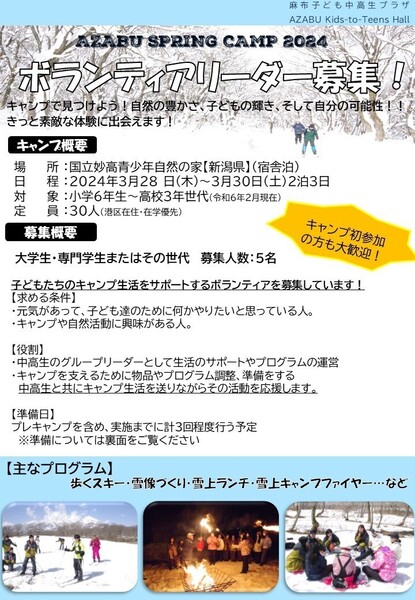 - 3月の妙高で2泊3日! 自然体験キャンプで子どもの関わろう! 引率ボラ募集!