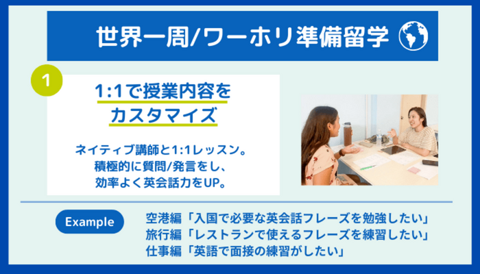 実践型「机に座らない」英語留学では、マンツーマンレッスンで効果的に英語力をUP