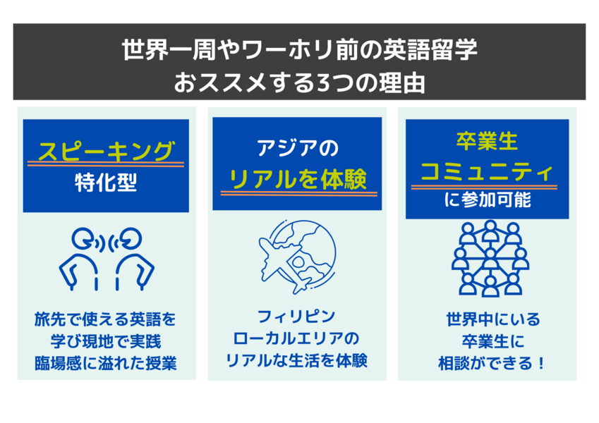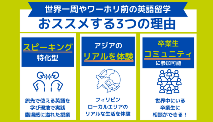 「世界一周」や「ワーキングホリデー」に行く前に英語留学をする人が増えています。