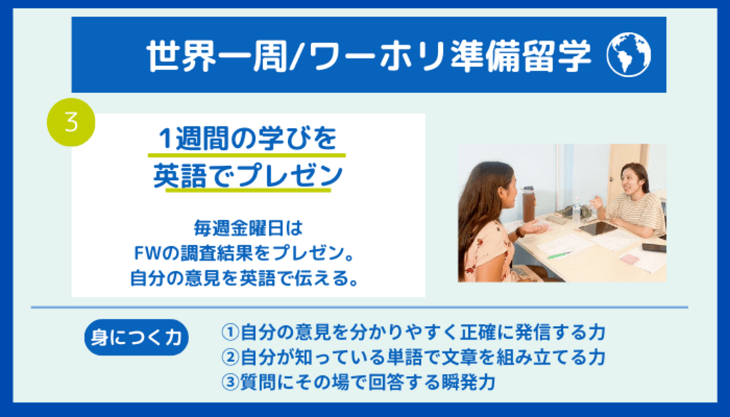 ③金曜プレゼン(自身のFW体験を英語でプレゼン )