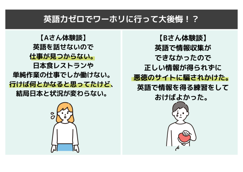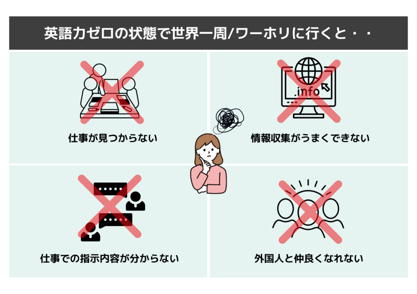 「1人で世界一周やワーホリに行ってみたいけど、英語が話せないむり!怖いからやめておこうかな」