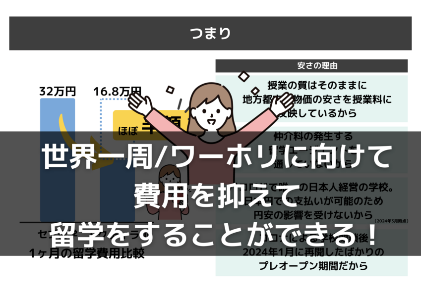 世界一周/ワーホリへの資金を蓄えるために、留学費用はなるべく抑えたいところ。