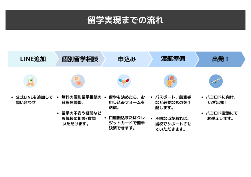 生徒一人一人に最短かつ最速で『より実践的で話せる英語』を身に付けてもらうため、習熟効果の高い英語カリキュラムの開発・付加価値の高い新しい留学体験を実現していきます。