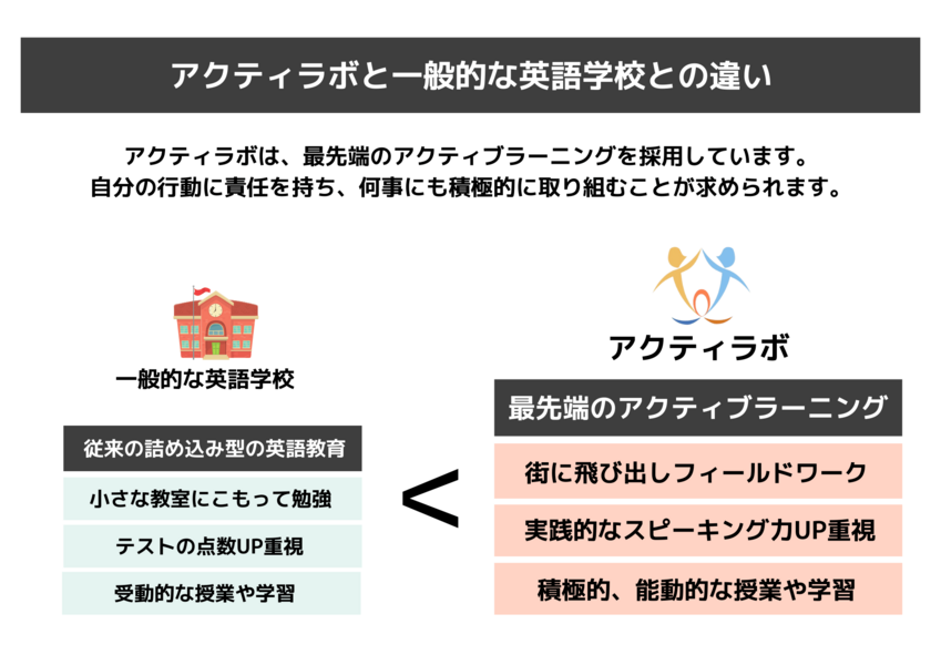 実践型『机に座らない』英語留学/ アクティラボの企業活動内容