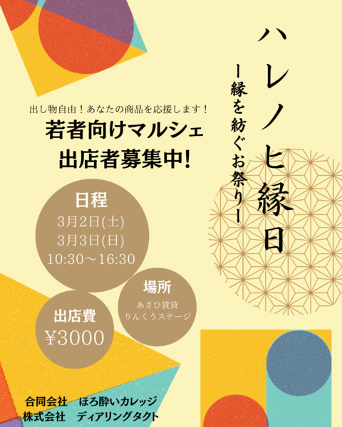 - 【泉佐野市】3/2.3和文化に出会うハレノヒ縁日 当日運営スタッフ募集!
