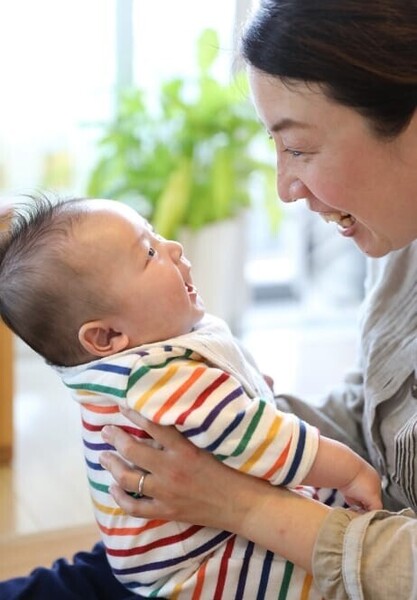 一緒に健診に行ったり、一緒に離乳食を作ったり、一緒に公園に遊びに行ったりします。笑顔届ける活動です。