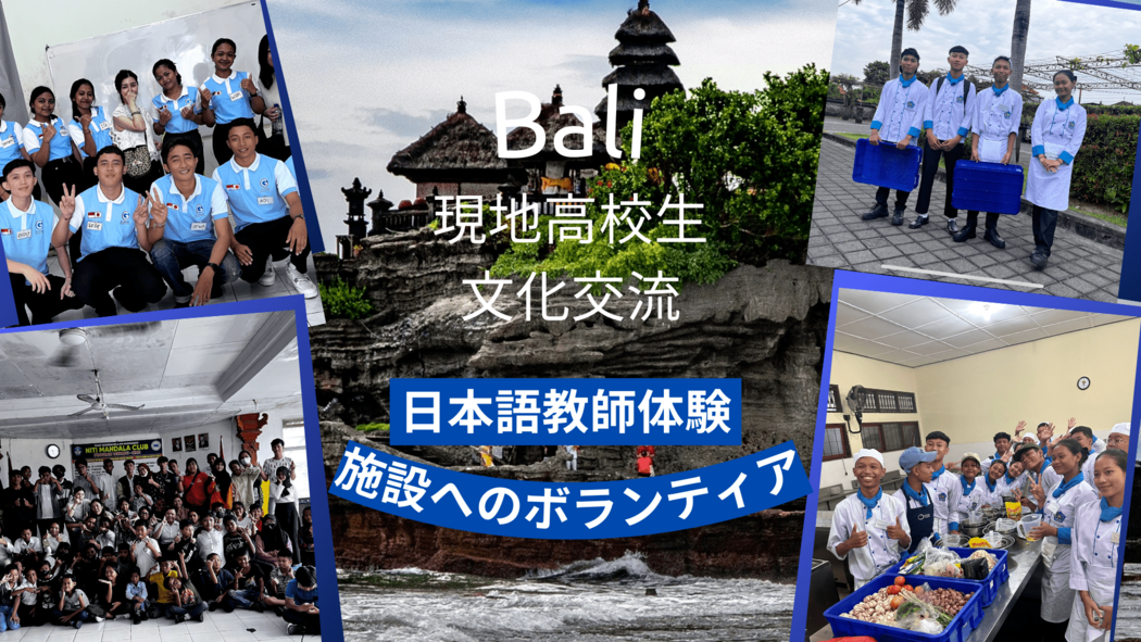 夏休み12日間、バリ島での学生向けプログラム!現地の職業訓練高校での授業体験や学生寮での滞在を通じて、現地の学生と文化交流を深めましょう。 滞在中には日本語や、日本の文化を伝える時間もあります。さらに日本での職業訓練を目指す学生が通う日本語学校での教師体験も行います。将来、彼らが日本滞在中に再会できる事もあるかも知れません。