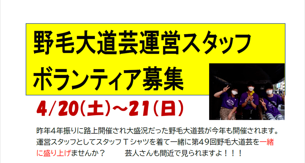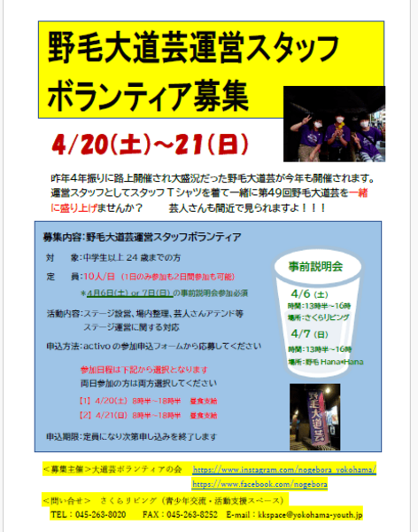 - 【募集】野毛大道芸を一緒に盛り上げませんか? 運営スタッフボランティア募集!