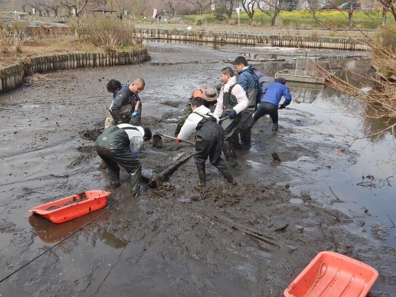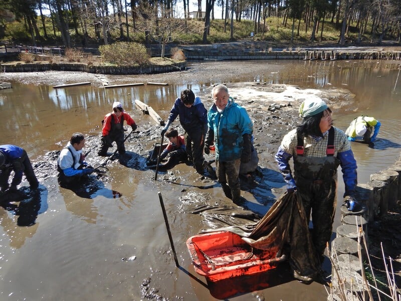 「みんなで水辺守~池底のシートはがし!編」が盛り上がっています。