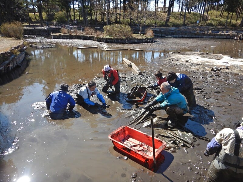 - 上尾丸山公園 水辺の保全作業「みんなで水辺守 池底のシートはがし!編」