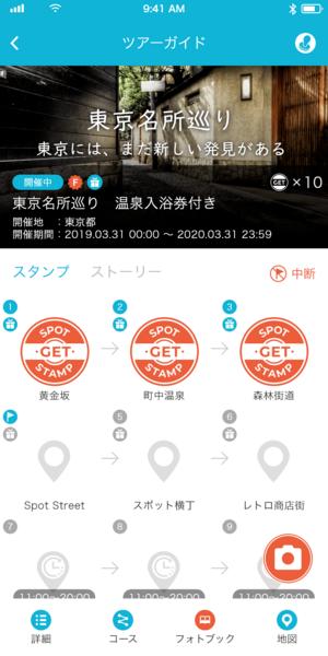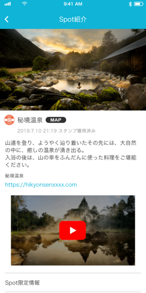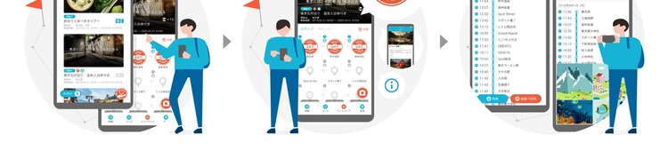 現地までのナビゲーションやデジタルのスタンプ、そして、現地に行くと開放される情報(限定情報)などを表示させることができます。全国の自治体や事業者(鉄道会社、バス会社、郵便局、旅行会社、Web制作会社、広告代理店など)が利用しています。