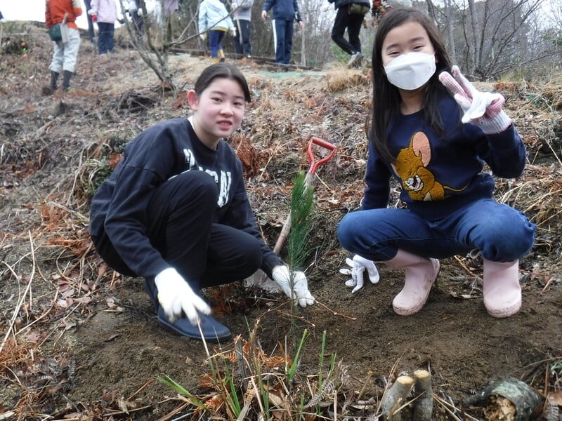 - ※2018年(平成30年)豪雨による土砂崩れで崩落した山林0.2haを2区画に分け、2年かけて植栽し(毎年0.1haずつ)、崩落地の自然再生を目指す。また、植栽後は苗木が十分に大きくなるまで育林を続ける。