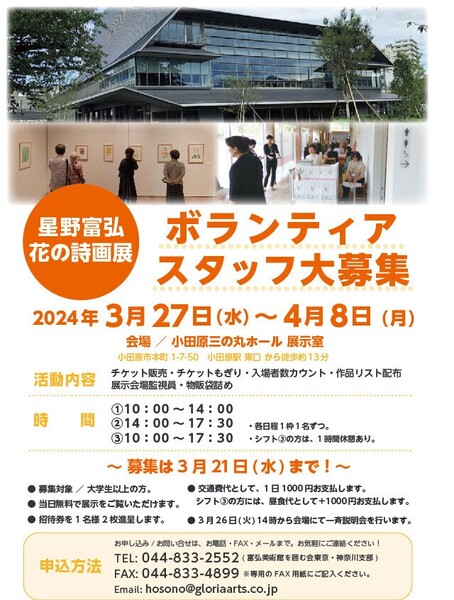 - 【展示会スタッフ】星野富弘花の詩画展 会場スタッフ募集!