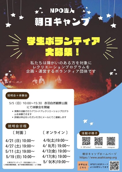 この募集の受入法人「NPO法人朝日キャンプ」をフォローして、