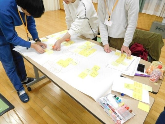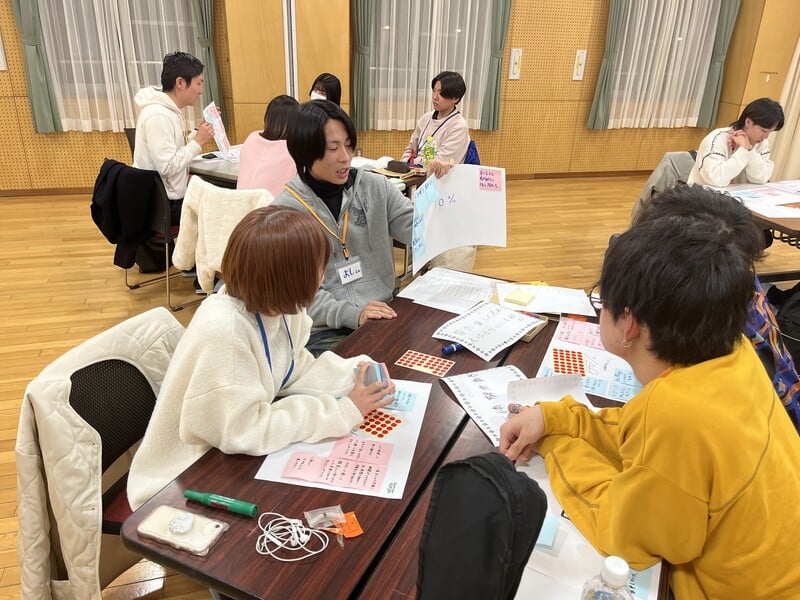 全体共有で出た意見を数個に絞り、ここまでに出た意見をもとに小グループに分かれて