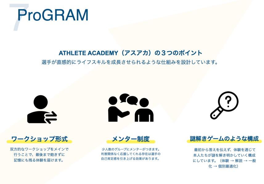 小中高生を対象とした、自走自律し応援されるアスリートになるための「ライフスキル(人間育成)」を育むプログラムを、メンターとして一緒に運営しませんか?