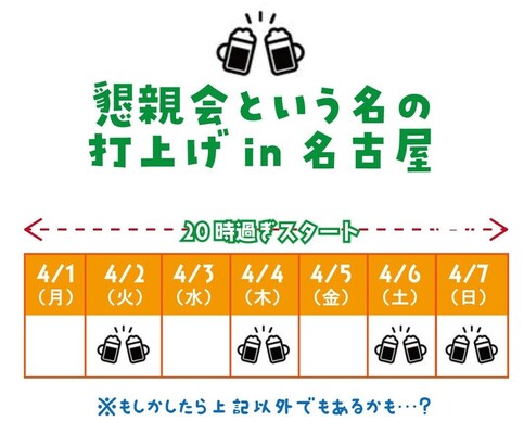 の日の打上げに参加できます。是非いろいろな日にご参加ください。