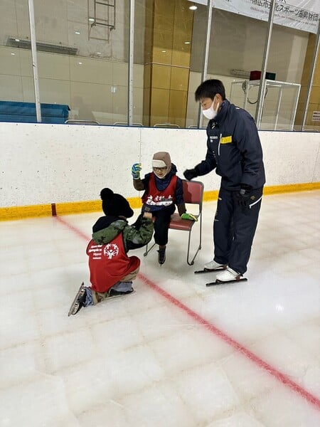 靴紐結び、オーディオ操作、リンクでのサポート(リンクに上がれる人は滑ってくださってもかまいません)