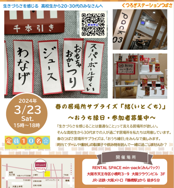 - 生きづらさを感じる若者が過ごせる「春の居場所サプライズDAY」参加者募集中@大阪