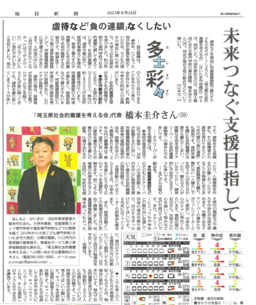 児童養護施設などで生活する子どもは埼玉県で1800人。彼らの心のケアを目的に施設・地域を超えた2泊3日の交流キャンプを長瀞で実施します。