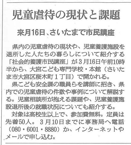 この募集の受入団体「さいたま子どもキャンプ(埼玉県社会的養護を考える会)」をフォローして、