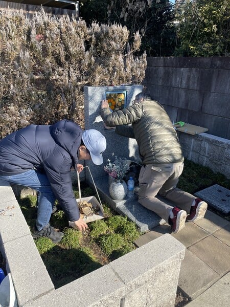 ●後を継ぐ人がいない方のためのおひとりさまのステンドグラスのお墓の草むしりやお墓参りをします。