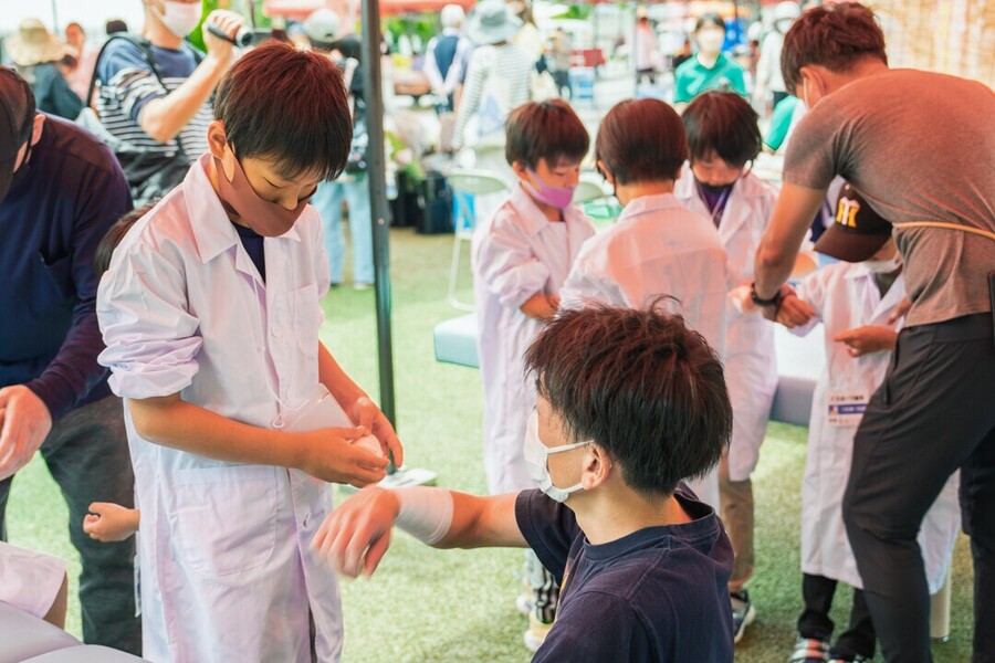 地域の子供たち(小学4年生~6年生)に会場内の職業を体験してもらい、仕事の「楽しさ」