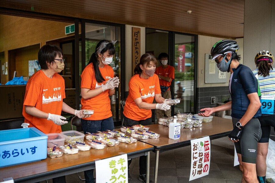 自転車イベントのエイド運営で、地元食でおもてなしすることをスタート。以後、毎年実行委員会としてエイド運営を担当(2020はコロナにより中止、2025年は体制見直しのため中止)。