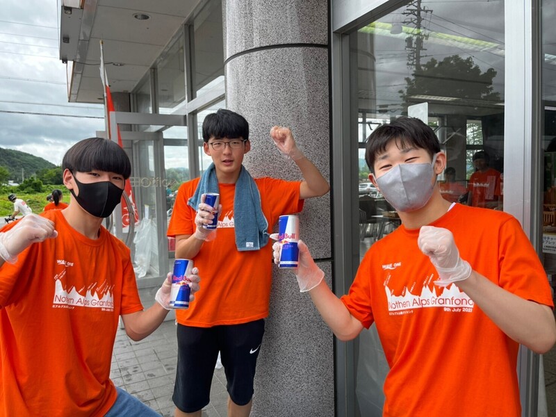 ボランティアには地元の人や移住した人など、子どもからシニアまで幅広い年代の方々が参加しています。美しい北アルプス山麓の景色の中で、提供する食を説明(自慢?!)したり、ライダーさんの面白いウェアに突っ込みを入れたり、カッコいい高級自転車をながめたり、参加者との交流も楽しめます。