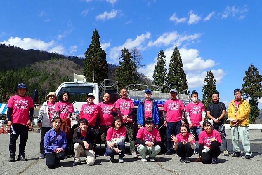 ボランティアには地元の人や移住した人など、子どもからシニアまで幅広い年代の方々が参加しています。美しい北アルプス山麓の新緑の中で、提供する食を説明(自慢?!)したり、ライダーさんの面白いウェアに突っ込みを入れたり、参加者との交流も楽しめるはず。