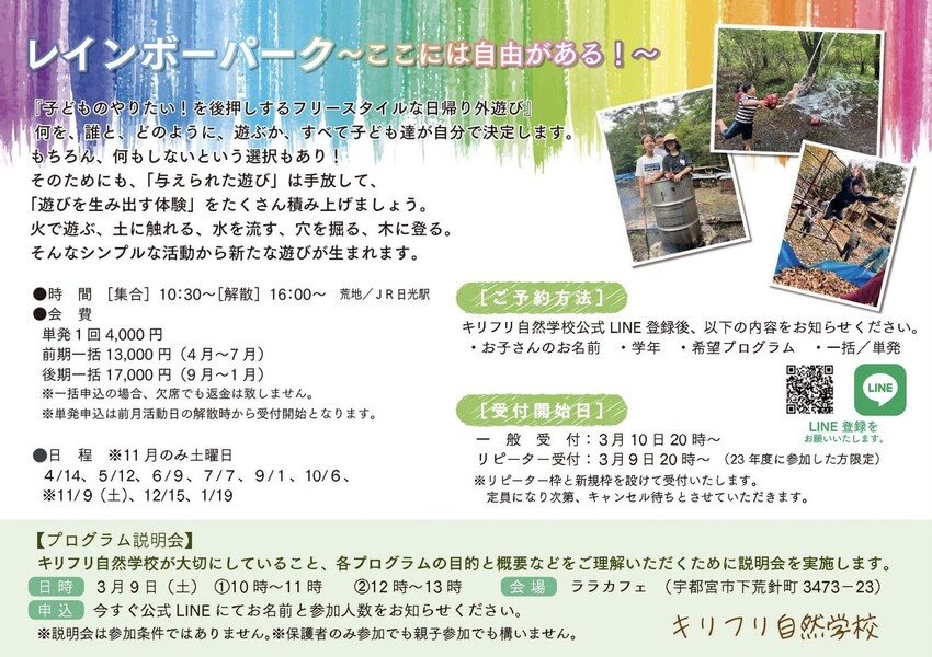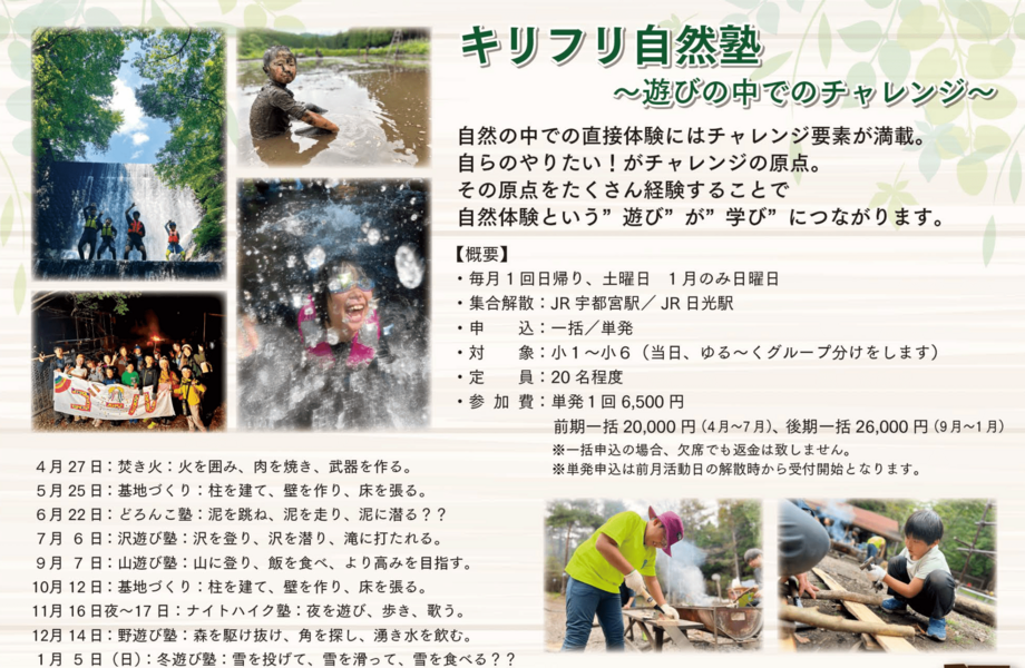この募集の受入団体「キリフリ自然学校」をフォローして、