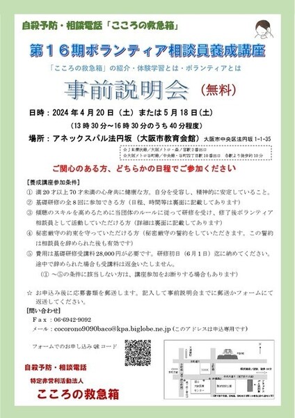 - 第16期ボランティア相談員養成講座開催 事前説明会