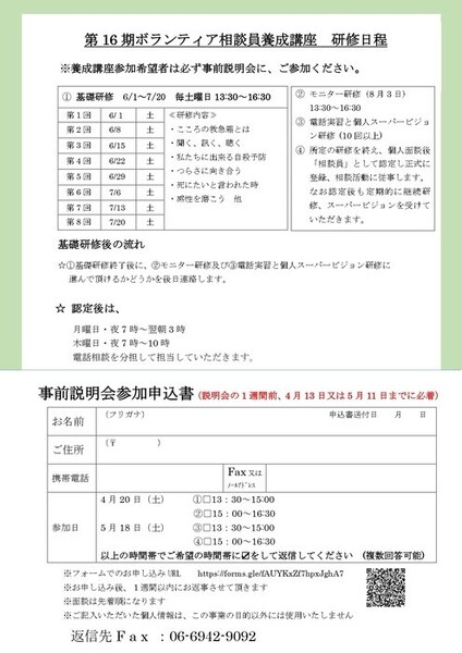 ボランティア相談員の養成講座を実施しますので、ご関心のある方はどなたでもぜひご参加ください。