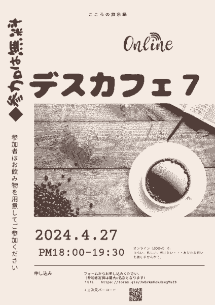 オンラインで参加ができる、居場所作りです。死にたい思いやつらい思いなど、参加者と共有が出来たらと思います。