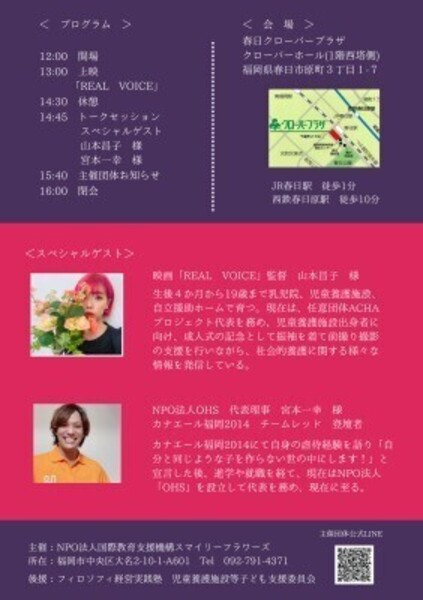 無料 イベント会場(春日クローバープラザ)までの交通費実費はご負担をお願いします。 |