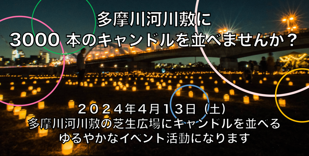 多摩川河川敷で4月13日(土)に行われる「多摩川キャンドルナイト灯と人」という地域イベントのボランティアになります。二子新地で開催します。よろしくお願い申し上げます。