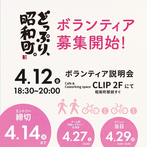 4/12(金) 18:30〜20:00 ボランティア募集説明会&交流会4/14(日) ボランティア募集締め切り