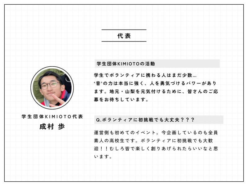 - 学生で盛り上げる♪音楽の力で山梨を盛り上げるイベントを企画するボランティア募集!