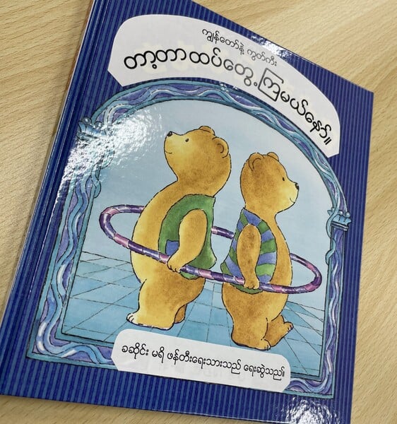 ミャンマー・アフガニスタンなどアジアの学校や図書館、難民キャンプに絵本を届けるため、日本の絵本の文章部分に、現地語のシールを切って貼る作業を行います。まずは絵本を読み、楽しむところから始めます!