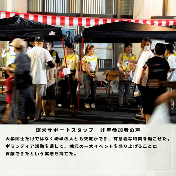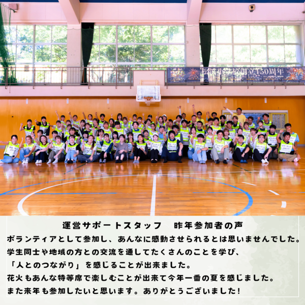 私たち実行委員もボランティアスタッフとして運営しておりますが、今年は節目となる50回目の開催を予定しており、より多くのボランティアスタッフのサポートが必要になります。