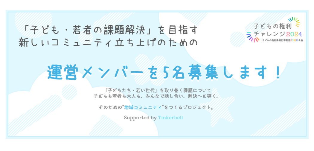5月スタート!子ども・若者の声を反映した課題解決や企画実現をサポートする新しいコミュニティを立ち上げます。そこで、その実現を支えるために新たな運営メンバーを募集します。
