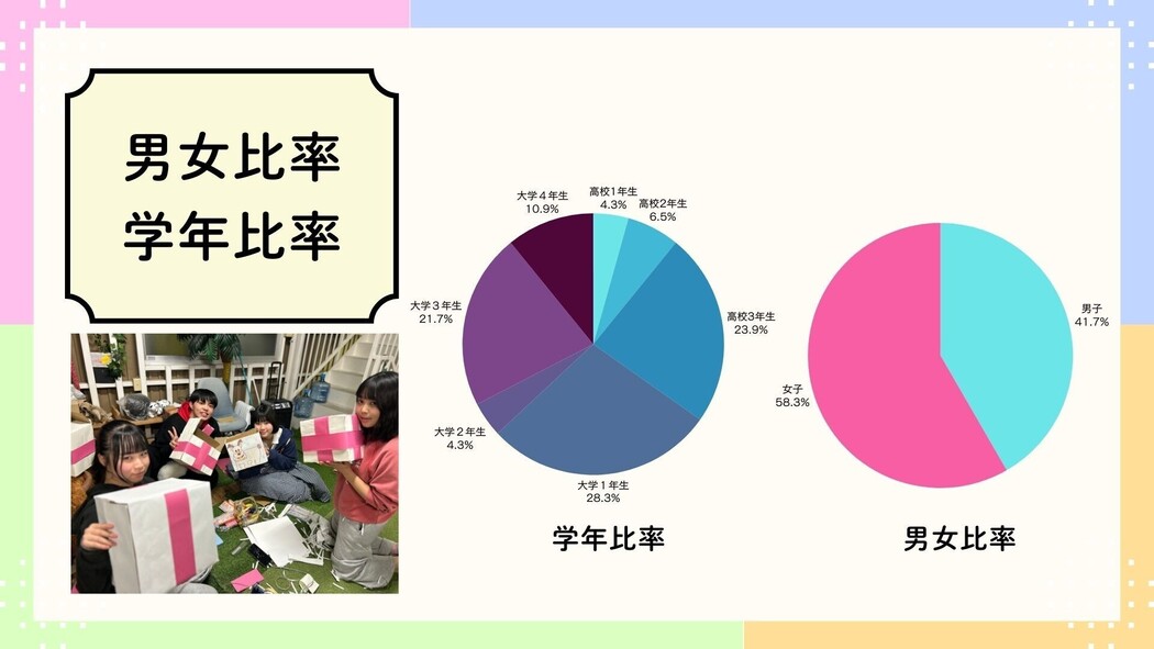 まずは、ガイダンス・体験会で活動の雰囲気を体験して頂いてから、今後の活動に仕方についてご相談させて頂きたいと思います!「まだ参加しようか迷っているからひとまずお話を聞きたい!」という方も、是非体験会に参加していただけたらと思います!応募後に送られるメールの中に添付されているGoogleフォームに詳しい場所と日時を記載しています!