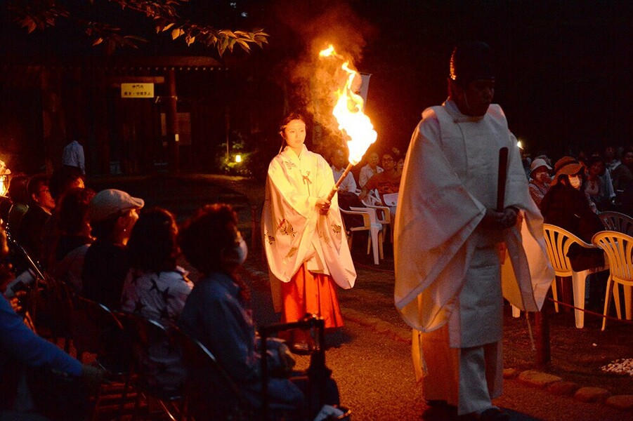 阿佐谷薪能は、2017(平成29)年に始まり、地元有志によるボランティアの実行委員会「あさがや能・狂言の会」により毎年開催し、今回で七回目を迎えます。薪能(たきぎのう)は夏の夜に篝火(かがりび)をたいて行う能楽で、平安時代が起源とされる神事・仏事。その神聖な儀式を現代の阿佐谷で楽しむことができます。