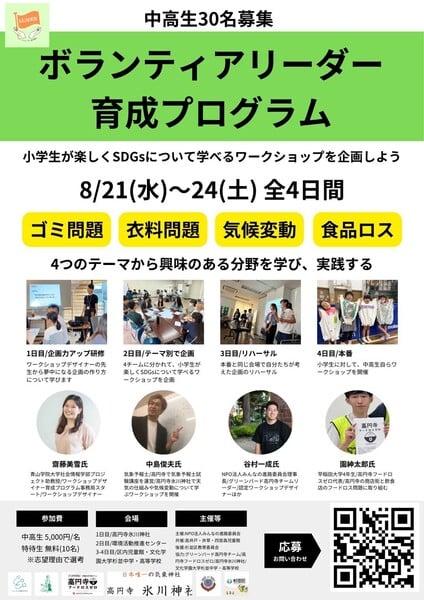 - 【中高生対象】8/21-24第2回ボランティアリーダー育成プログラム参加者募集!