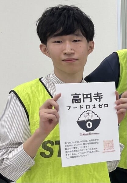 早稲田大学4年生。主に早稲田大学の学生を中心に設立された高円寺フードロスゼロで代表を務め、高円寺の商店街等と連携しながら、飲食店のフードロス問題に取り組む。また、ロス食品を活用したワークショップに地域のイベント等で取り組む