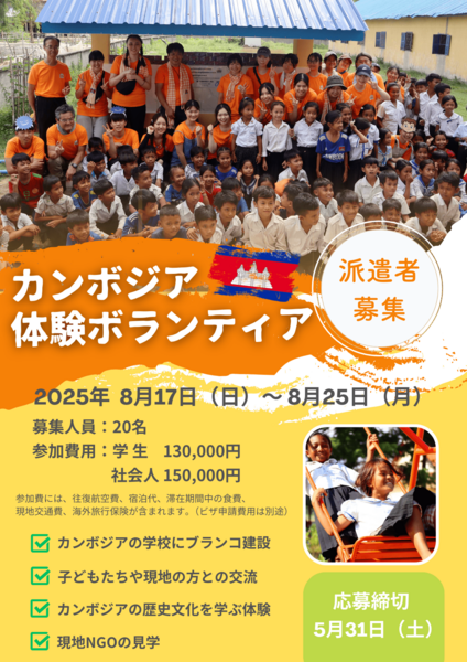 - 【カンボジアで国際協力】2025年8月「カンボジア体験ボランティア」派遣者募集!