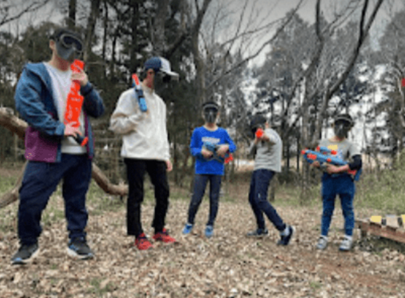 サバイバルゲームはこども達に人気で、コミュニケーション能力、計画性、戦略性などを体験できます。