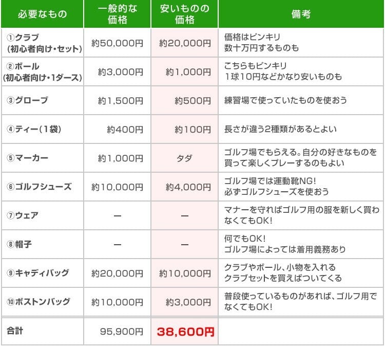 ゴルフの場合は、コースデビューをして初めて本当の魅力を知ることができるのですが、そこに至るまでの時間と費用については、他の趣味と比較しても負担が大きいことは確かです。