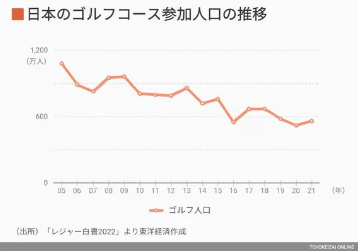 【2022年ゴルフ人口510万人で、40年来過去最少に】