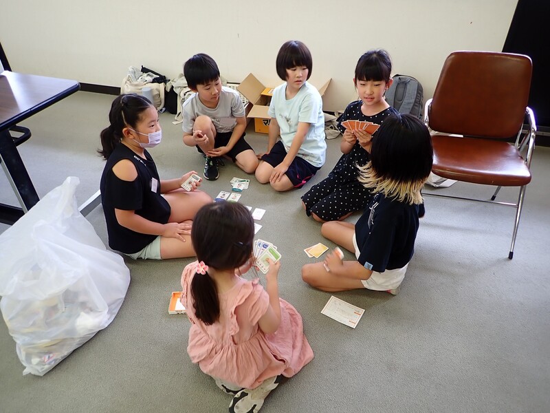 毎年、高校生が参加して、ボードゲームのゲームマスターとして子どもたちに大人気。大人たちは、夏休み帳のヒントを出したり、気が散りがちな子どもの集中を促したり、自由時間は図書コーナーの本を勧めたりしました。